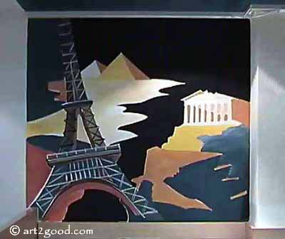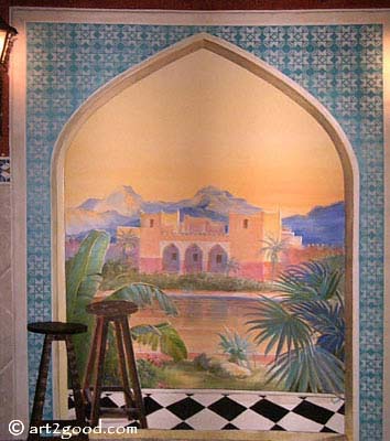 Residential Murals and Public Murals function differently. Public art addresses communities and tends to gravitate towards monumentality and eneralization. At the other hand, in a private home a mural can be tailor-made to reflect the taste of an individual client.