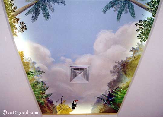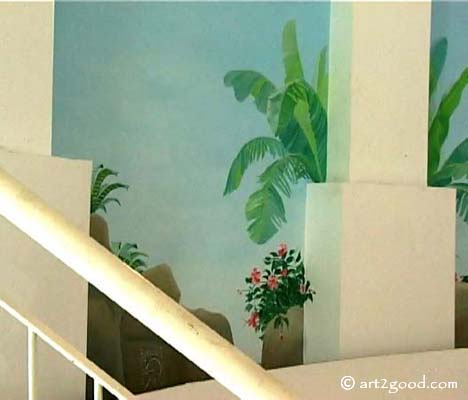 Residential Murals and Public Murals function differently. Public art addresses communities and tends to gravitate towards monumentality and eneralization. At the other hand, in a private home a mural can be tailor-made to reflect the taste of an individual client.
